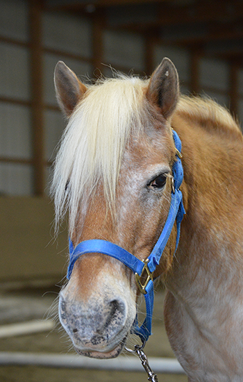 Mustang Sally (“Sally”) – (foaled 4/1/95?) a POA/Halflinger mare was donated to CTR in September 2008 and is our first pony! The donor felt that with her enormous charm and good looks that Sally would thrive as a therapy horse. Sally has loads of patience and loves to be groomed and read to. Sally's versatility allows her to participate in therapeutic riding, hippotherapy, and equine assisted learning. She is always first at the gate to greet any visitors. She especially loves when our riders take time to pat her head and kiss her cheek.